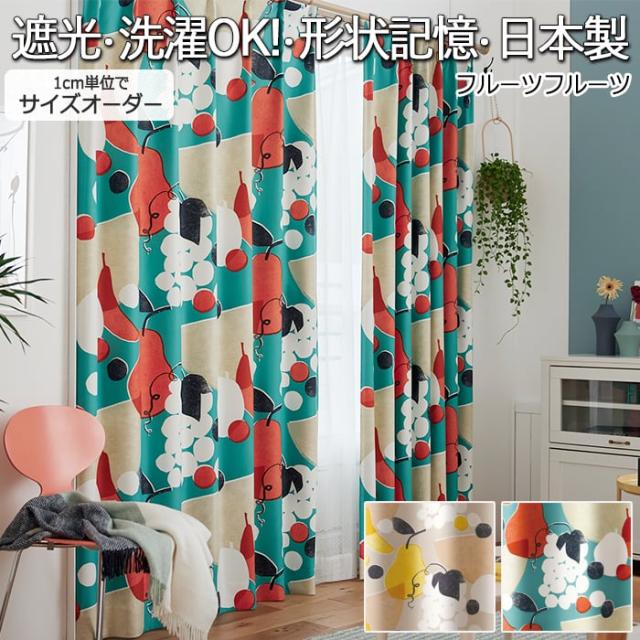 遮光2級 【カーテン】 洗える 厚地カーテン 日本製 オーダー 幅300×丈260cm以内 フルーツフルーツ (S) 形状記憶加工 タッセル付き DESIGN LIFE デザインライフ 引っ越し 新生活