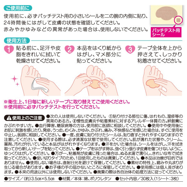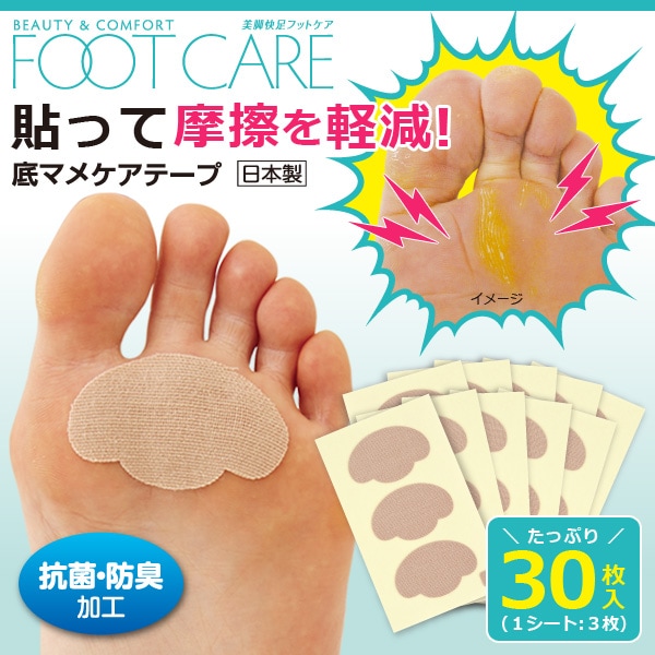 底マメ 保護 テープ 絆創膏 使い捨て 30枚 抗菌 防臭 ムレにくい マメ タコ 魚の目 底マメケアテープ 30枚入 【メール便送料無料】 足裏 摩擦 衝撃軽減 ケア ガード シールタイプ 薄型 伸縮 伸びる フィット 剥がれにくい 簡単 貼るだけ agesugi_sbe