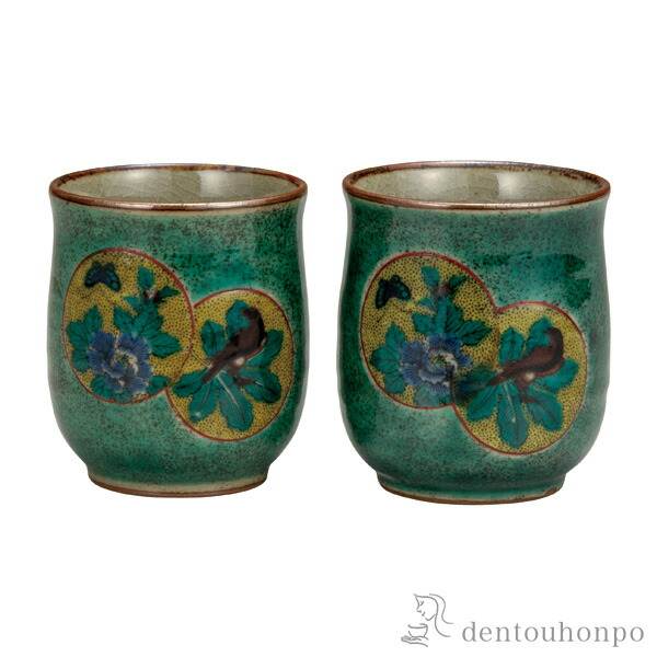 組湯呑 グリーン丸紋 ( 退職祝い 定年 湯呑み 湯のみ セット 湯飲み おすすめ 九谷焼 結婚 出産 内祝い 引き出物 金婚式 )