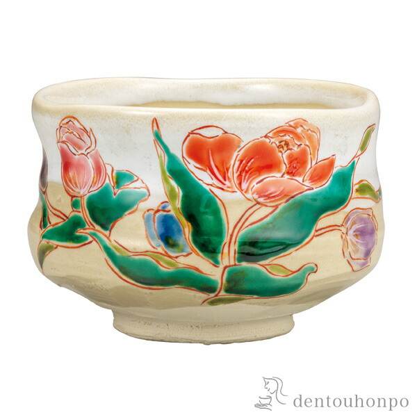 「送料無料」 抹茶碗 チューリップ ( 木箱名入れ有料 退職祝い 定年 抹茶碗 茶道具 茶器 お稽古用 抹茶 九谷焼 結婚 出産 内祝い )