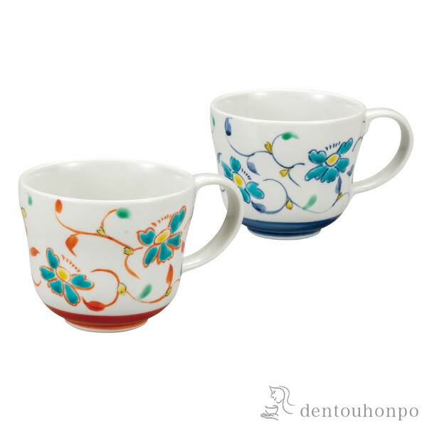 ペアマグカップ 花唐草 ( 退職祝い 定年 プレゼント デザイン マグ オリジナル タンブラー 九谷焼 結婚 出産 内祝い 引き出物 金婚式 )
