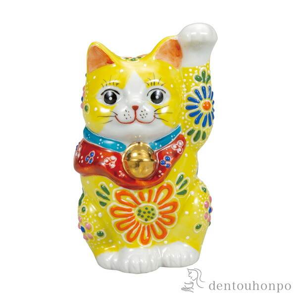 「送料無料」 招き猫 黄盛 3.3号 ( 木札名入れ有料 初任給 プレゼント 母の日 置物 幸運 開運 まねきねこ 風水 九谷焼 結婚 出産 )