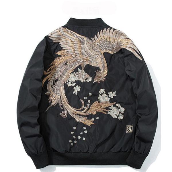 刺繍ジャケット 鳳凰マークスカジャン メンズブルゾン 和風 和柄フライトジャケット 春秋ジャケット 大きいサイズあり C80