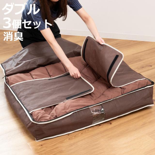 布団収納ケース 3個セット 炭入り 消臭 羽毛布団収納ケース ダブル ( 布団 収納袋 羽毛布団 掛け布団 布団ケース コンパクト 収納 布団収納袋 隙間収納 押入れ収納 ふとん収納袋 布団袋 すき間収納 ニオイ 汗 羽毛ぶとん )