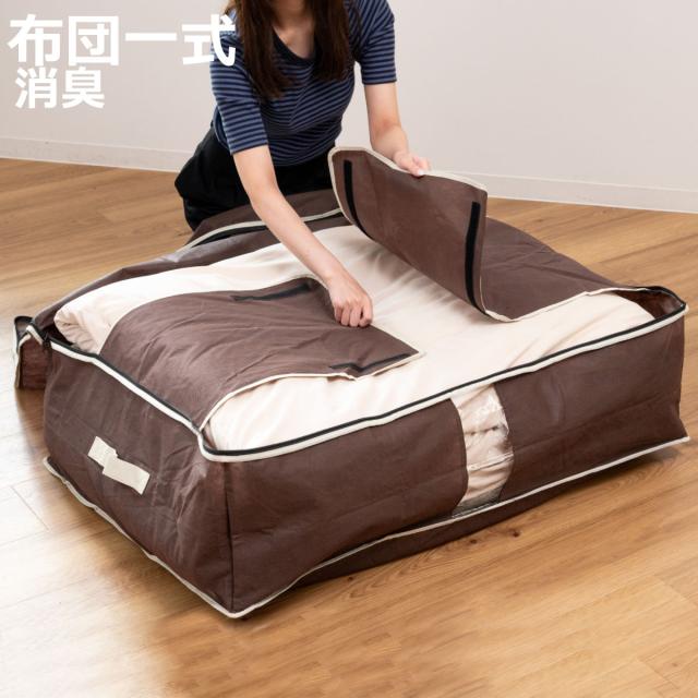 布団収納ケース 炭入り消臭布団一式収納ケース ( 一組 シングル 羽毛布団 掛け布団 敷き布団 布団 収袋 消臭 ニオイ 汗 隙間収納 布団収納袋 押入れ収納 ふとん収納袋 ふとん収納ケース 布団袋 収納 すき間収納 布団ケース )