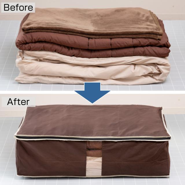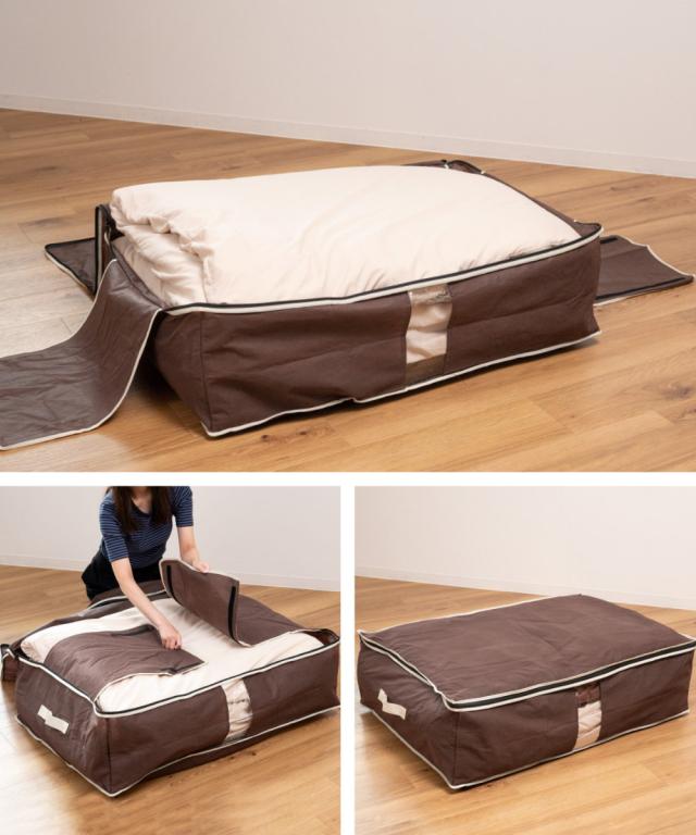《 LH3586 来客用 来客布団 来客用収納 季節布団 敷きパッド 茶色 ブラウン 中身が見える コンパクト 収納用品 すき間 隙間 衣替え 整理整頓 収納術 長期保管 シングル布団 省スペース 》