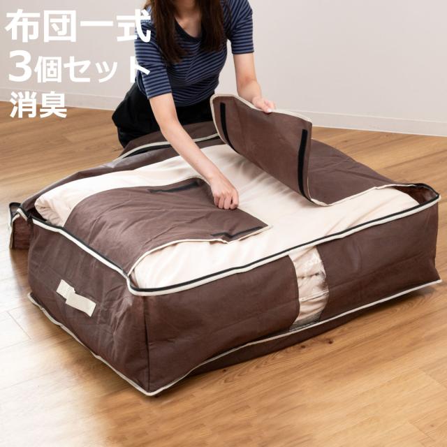 布団収納ケース 炭入り消臭布団一式収納ケース 3個セット ( 一組 シングル 羽毛布団 掛け布団 敷き布団 布団 収袋 消臭 ニオイ 汗 隙間収納 布団収納袋 押入れ収納 ふとん収納袋 ふとん収納ケース 布団袋 収納 すき間収納 )