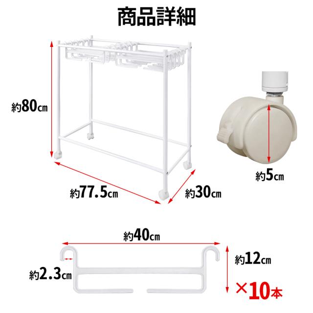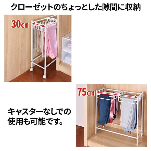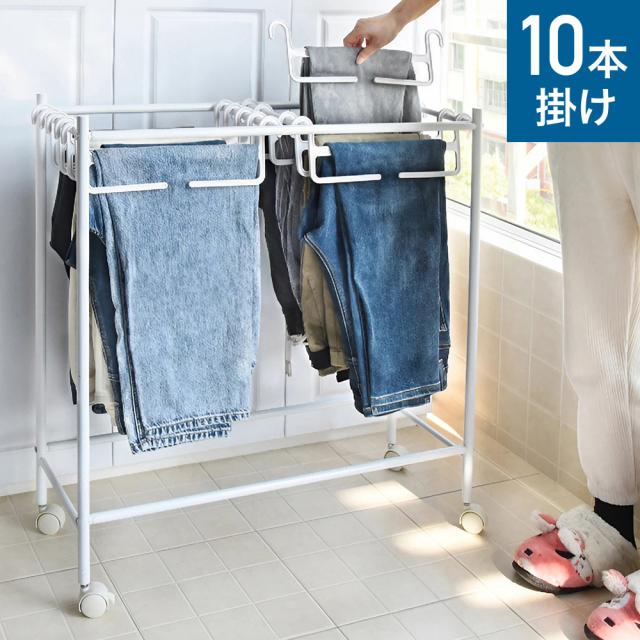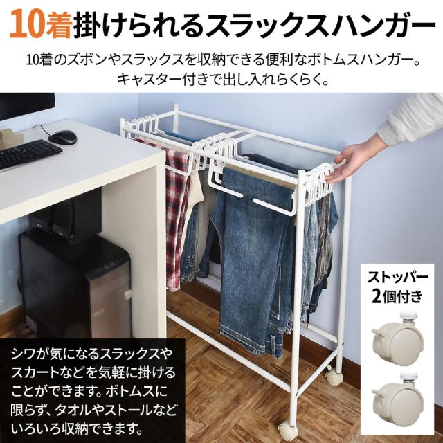 スラックスハンガーラック キャスター付き 10本 コンパクト ハンガー 引っ掛けるだけ 簡単収納 ラック 引っ掛け キャスター ボトム ズボン