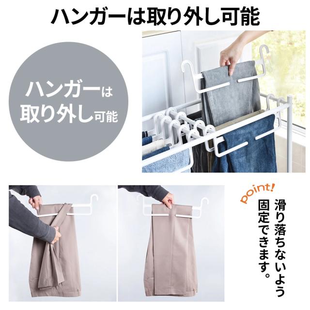 ハンガーは取り外し可能。また、滑り落ちないように固定ができます。