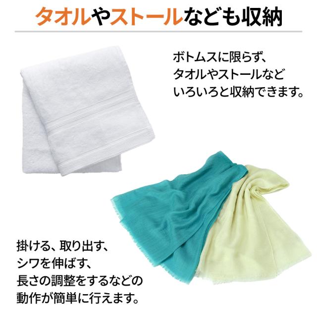 ボトムスに限らず、タオルやストールなどいろいろと収納できます。