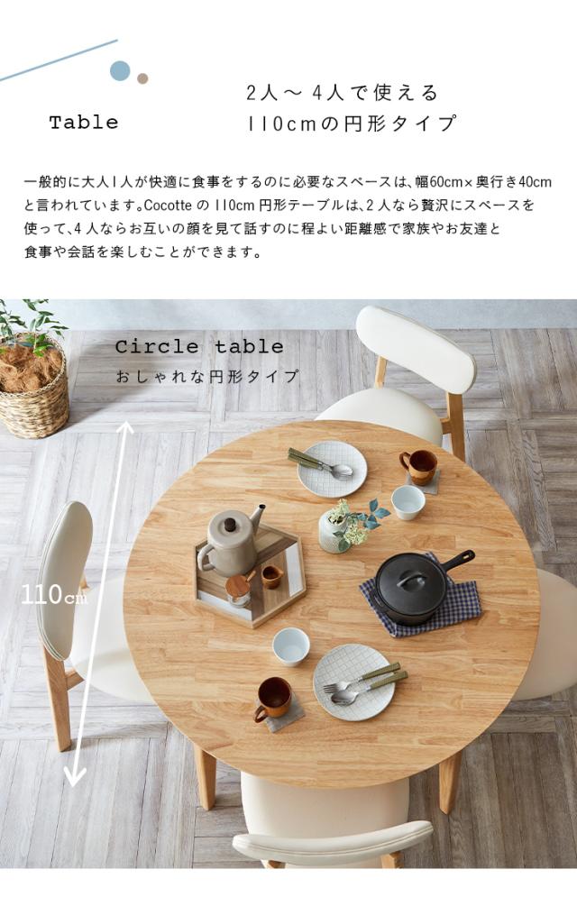 円形ダイニングテーブル 幅110cm 単品 Cocotte3(ココット3) ダイニング テーブル 4人掛け 食卓テーブル ラウンドテーブル 円卓 ミーティングテーブル 作業台 ワークテーブル ナチュラル 木製 おしゃれ