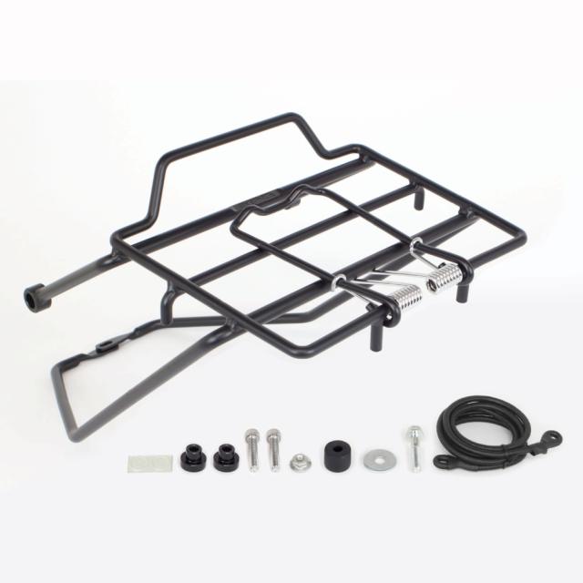 通勤・通学時に使用するカバンやツーリング等で必要な雨具、シュラフ等を積載する事ができます。 装着には加工の必要が無く簡単に取付けが可能です。表面処理はブラック塗装で非常に強度のある塗装処理を施しています。