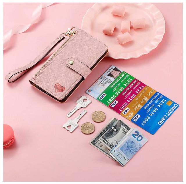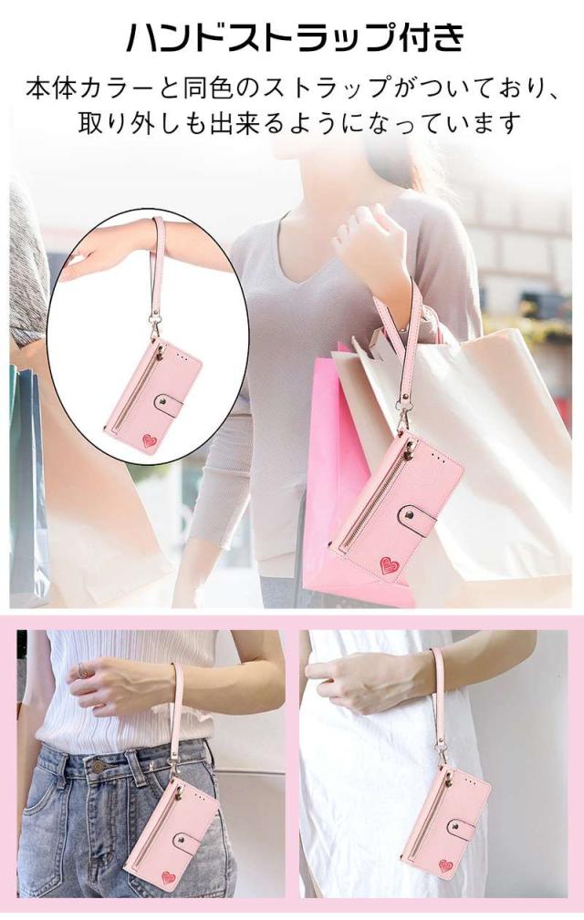 Galaxy S24 ケース 手帳型 ジップ付き GalaxyS25 GalaxyS21 GalaxyS22 GalaxyS23 S23FEケース スマホケース Galaxy S23 S22 S21 S20 Ultra S21+ S20+ 5G 手帳型ケース カバー コインケース 財布 ポーチ付き スタンド機能 ストラップ付き ハート柄 おしゃれ 大人女子
