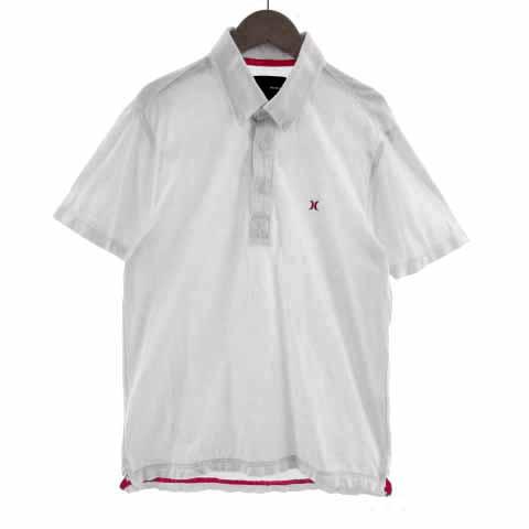 【中古】ハーレー Hurley ポロシャツ ボタンダウン 半袖 ロゴ刺繍 ホワイト 白 ピンク M メンズ