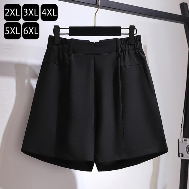 ★☆大きいサイズレディース ショートパンツ 黒 ミニ ウエストゴム ズボン ボトムス 3L 4L 5L 6L 7L 春夏 秋 ブラック☆★