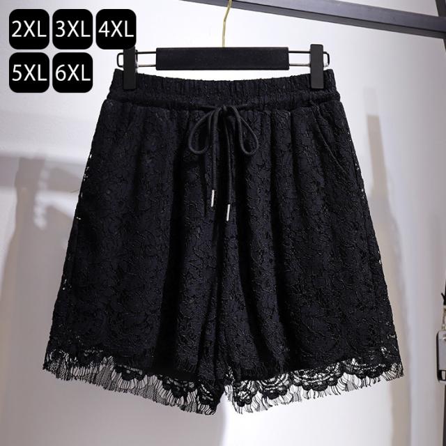 ★☆大きいサイズ レディース ショートパンツ 黒 レース ウエストゴム ズボン ボトムス 3L 4L 5L 6L 7L 春夏 秋冬 ブラック☆★