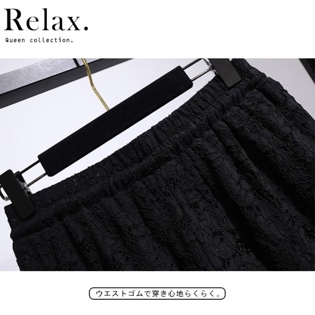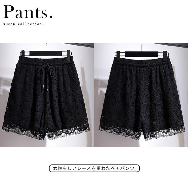ショートパンツ 黒 レディース レース ウエストゴム 大きいサイズ 春夏 秋冬 ブラック ズボン ボトムス 3L 4L 5L 6L 7L (62308)