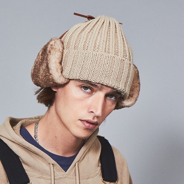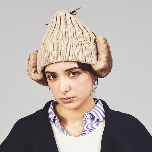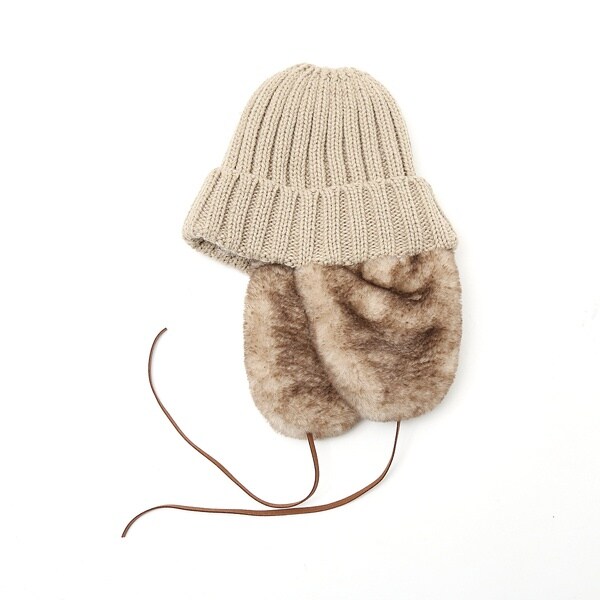 サイドのボアがアクセントになるイヤーカバーニット帽。