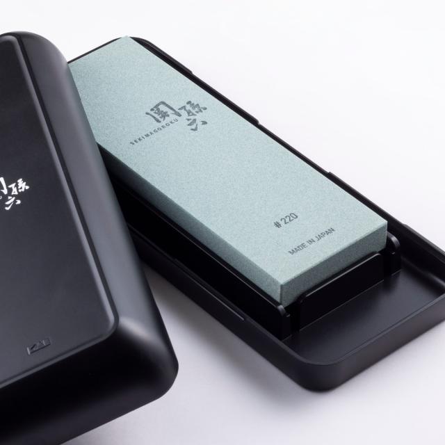 大きな刃欠けを修正したり、刃形状を大幅に修正する場合に使用する砥石です。最も研削力が高く、硬度の高い包丁や和包丁の研ぎ直し、錆び落としにも適しています。同じ関孫六ブランドの高価格帯の包丁もしっかりとメンテナンスできます。