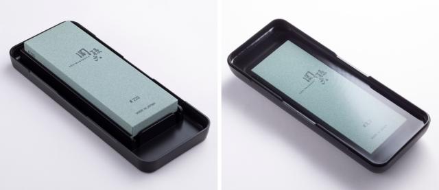 シンプルでスタイリッシュな収納ケースは、研ぎ台として使えます。砥石にフィットする独自構造の研ぎ台で、裏面は滑り止め付きなので、安定して研ぐことができます。蓋は砥石を水に浸す容器としても使えます。