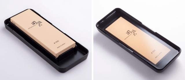 シンプルでスタイリッシュな収納ケースは、研ぎ台として使えます。砥石にフィットする独自構造の研ぎ台で、裏面は滑り止め付きなので、安定して研ぐことができます。蓋は砥石を水に浸す容器としても使えます。