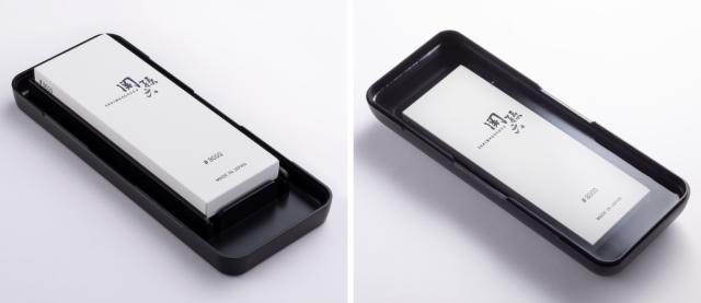 シンプルでスタイリッシュな収納ケースは、研ぎ台として使えます。砥石にフィットする独自構造の研ぎ台で、裏面は滑り止め付きなので、安定して研ぐことができます。蓋は砥石を水に浸す容器としても使えます。