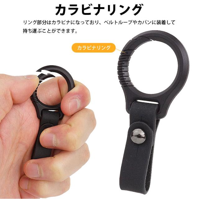 リング部分はカラビナになっており、ベルトループやカバンに装着して持ち運ぶことができます。