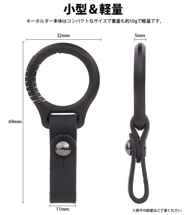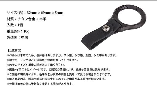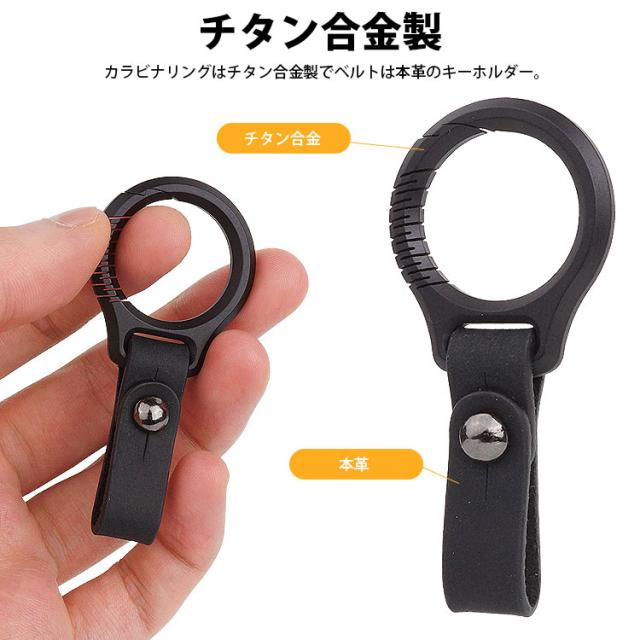 カラビナリングはチタン合金製でベルトは本革のキーホルダー。