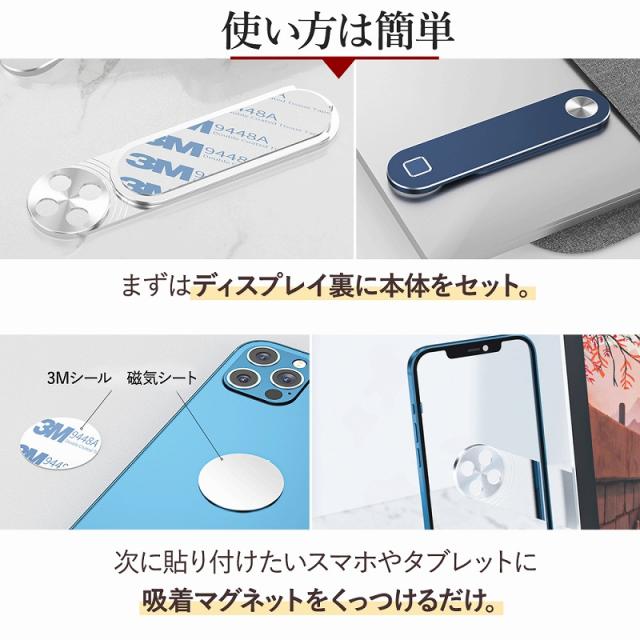2.次に貼り付けたいスマホやタブレットに吸着マグネットをくっつけるだけ。