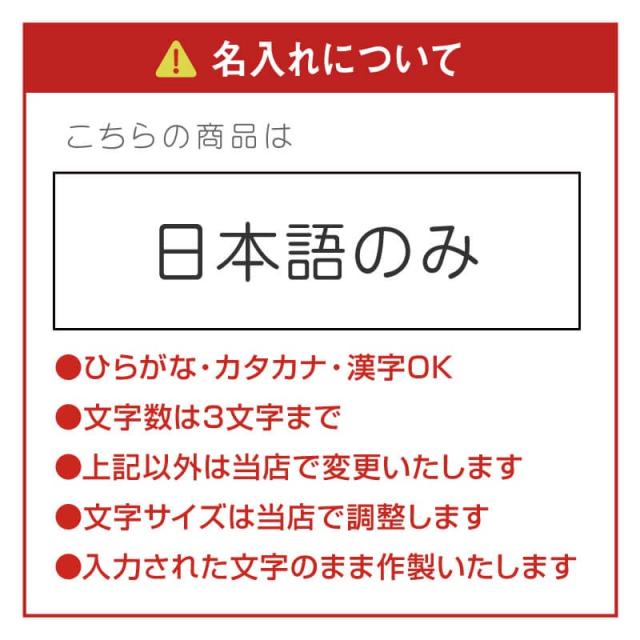 | 名入れ | 彫刻する文字は「記入欄」へご記入下さい。 【お名前】日本語のみ 文字数は3文字までとさせていただきます。 ・上記以外は当店で変更します ・文字サイズは当店で調整します |