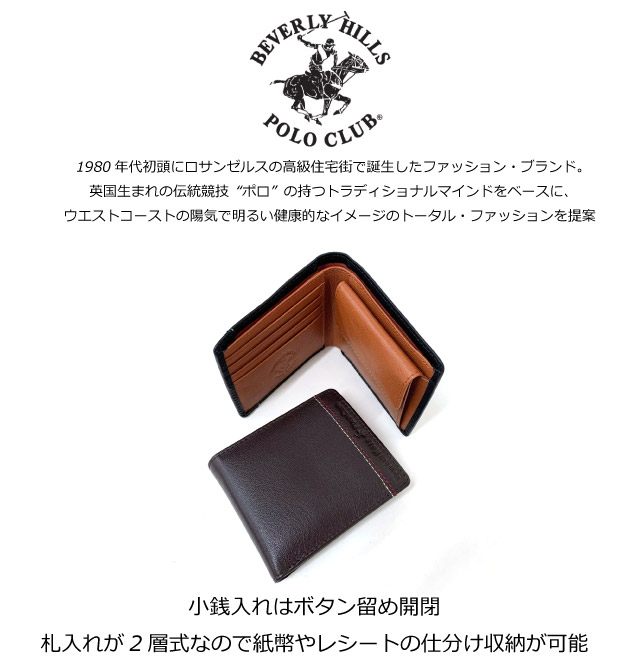 財布 メンズ 二つ折り ブランド BEVERLY HILLS POLO CLUB TEX-3 二つ折り財布 61b402 小物 ブランド雑貨 学生 財布 メンズ財布 折りたたみ財布 男子 男性用 レザー 革 人気 お父さん プレゼント 父の日 お誕生日 黒 茶 小銭入れ付き 折り財布 コンパクト おしゃれ 高校生