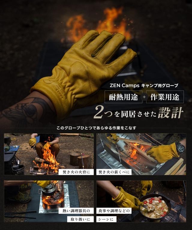 ZEN Camps 耐熱性と作業性に優れたキャンプ専用グローブ。キャンプ用、アウトドア用 、BBQ用に最適です。