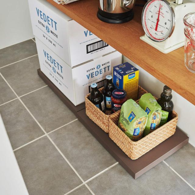 ベッド下、ソファ下などのデッドスペースの活用にもおすすめです。薄型のバスケットや収納ケースをラクゴロの上に載せておけば、収納物の出し入れも簡単にできます。