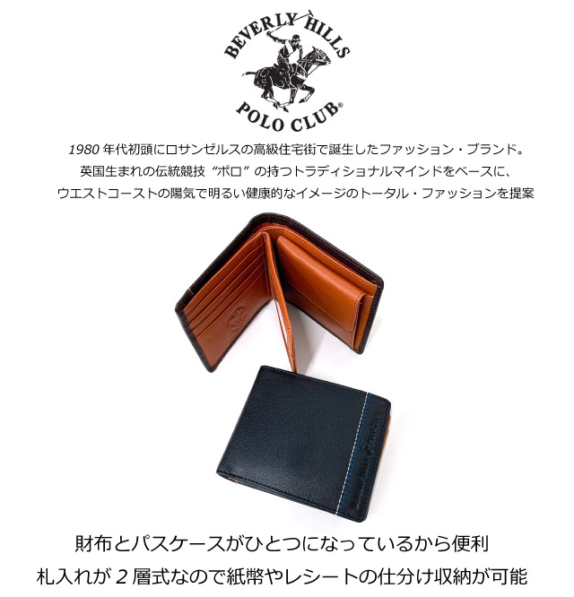 財布 メンズ 二つ折り パスケース付き BEVERLY HILLS POLO CLUB TEX-3 中ベラ付き 二つ折り財布 61b403 定期入れ付き 学生 財布 メンズ財布 折りたたみ財布 男子 男性用 レザー 革 人気 プレゼント 父の日 お誕生日 黒 茶 小銭入れ付き 折り財布 コンパクト おしゃれ 高校生