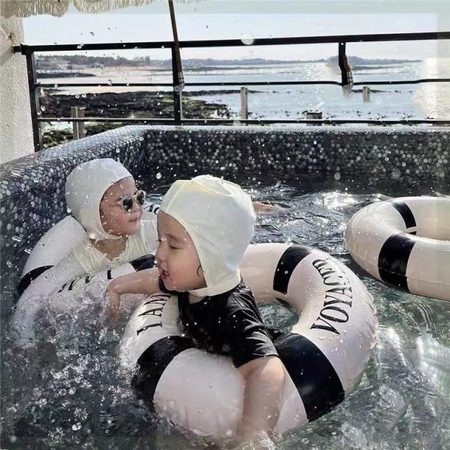送料無料 浮き輪 うきわ プール 水遊び プール遊び 海 キッズ 大人用 子供用 フロート 4サイズ展開 かわいい おしゃれ ボーダー モノクロ マリンスポーツ アウトドア ビーチ リゾート