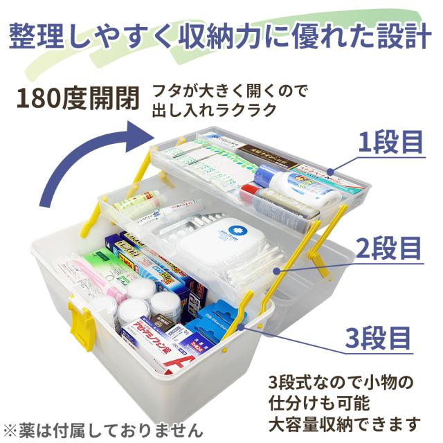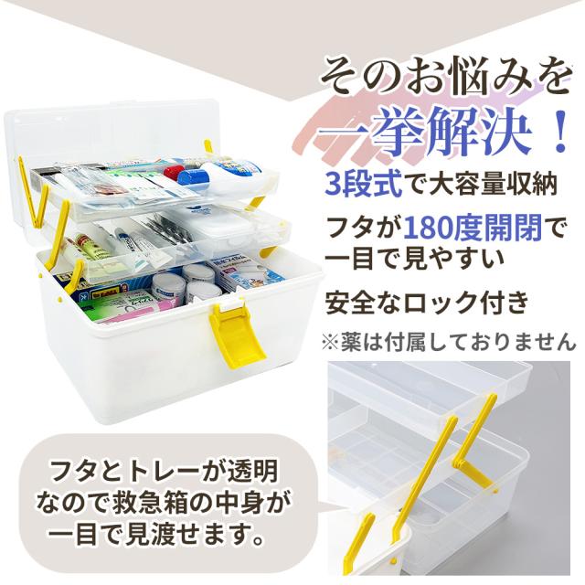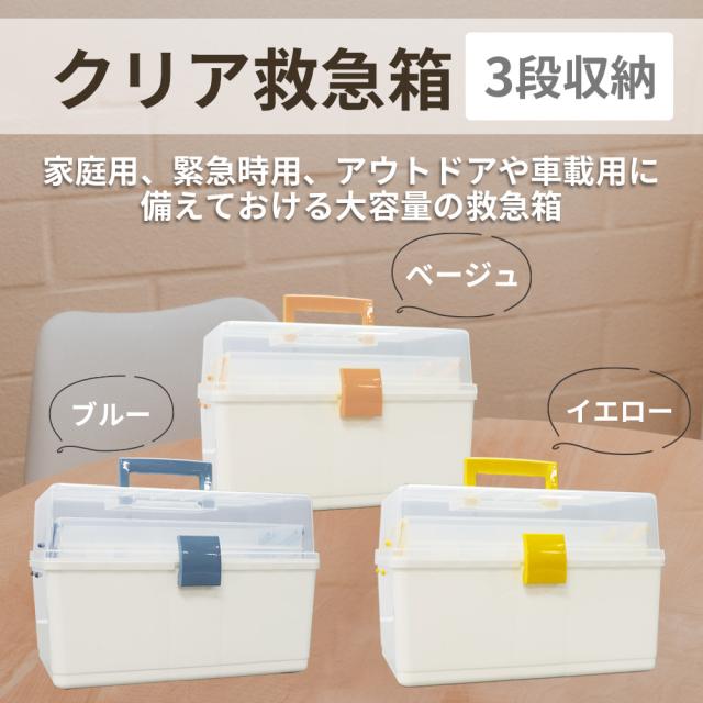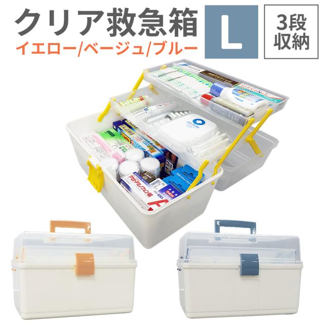 クリア救急箱 3段収納 Lサイズ 救急ボックス 防災用品 救急ボックス 3色 薬箱 防災グッズ PKB02