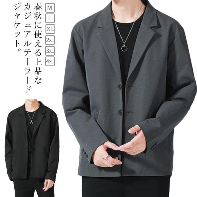 ジャケット メンズ 秋 夏 春 長袖 テーラードジャケット 送料無料 スーツ地 アウター テーラード ライトアウター ブラック グレー ゆったり キレイめ 紳士服 春服 秋服
