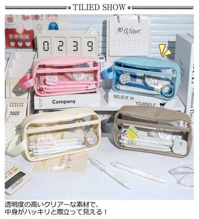 大容量 ペンケース 透明 クリアペンケース 透明ペンケース 筆箱 かわいい シンプル 透明筆箱 収納 クリア ペンポーチ 韓国 おしゃれ 社会人 大学生 高校生 中学生 小学生 小学校受験 中学校受験 女子 男子 スリム 大人 名入れ 送料無料