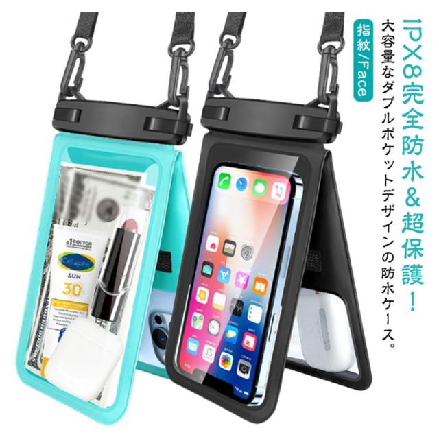 送料無料 防水ケース スマホ ビーチ サーフィン 潜水 ウォーターパーク IPX8 ダブルポケット 携帯電話アクセサリー 防水カバー スマホ防水バック 防水バッグ 海 お風呂 浮く プール 大きめ 自転車 バイク 釣り キャンプ アウトドア スキー