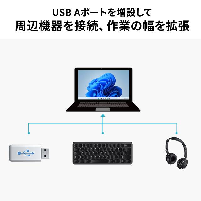 ●Type-Cケーブル1本でHDMI、USB A×1、Type-C×1、PD充電器(最大100W)の拡張接続ができるUSB Type-Cハブです。●Type-Cケーブル1本の接続で、大画面ディスプレイとUSBデバイスで快適に操作し、外出や会議など移動時にはType-Cケーブル1本を抜くだけでさっと持ち運ぶことができます。