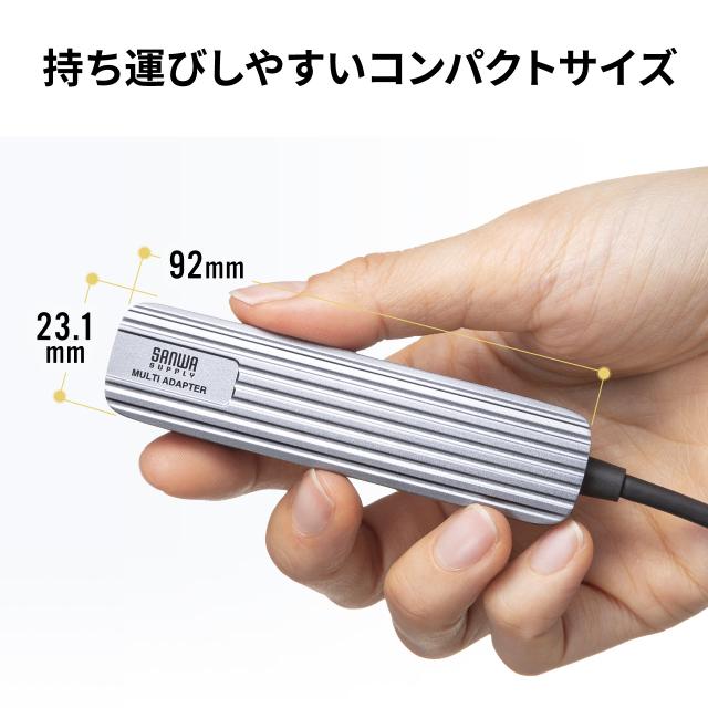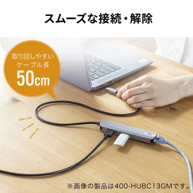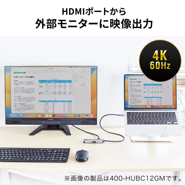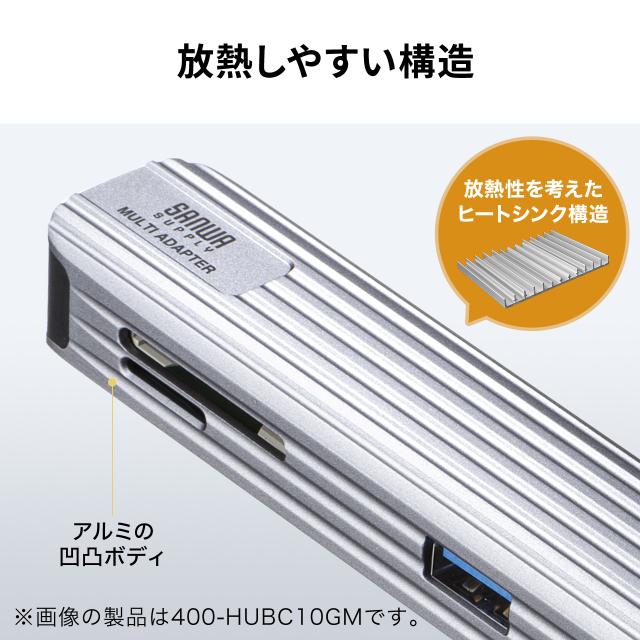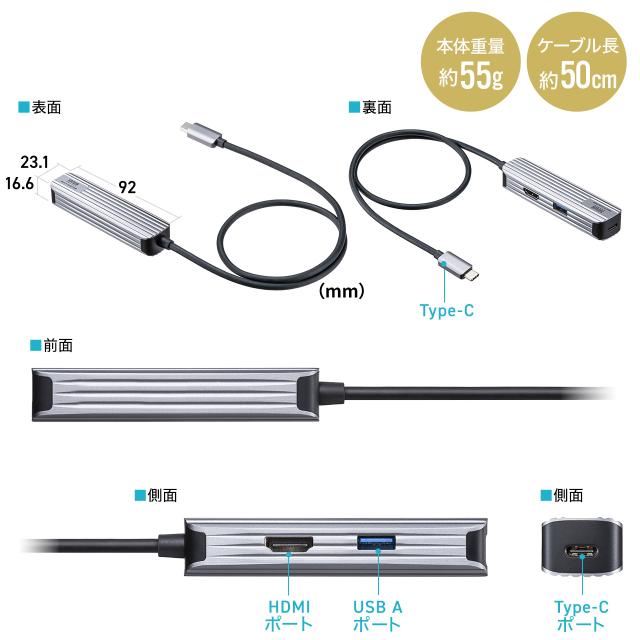 USBハブ HDMI出力対応 小型 ドッキングステーション アルミ素材 ケーブル長50cm[400-HUBC11GM]