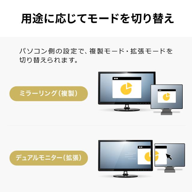 ●HDMI出力4K/60Hz対応で、ソフトウェアのインストールなしで簡単にマルチディスプレイ環境(ミラーモード/拡張モード)を実現できます。