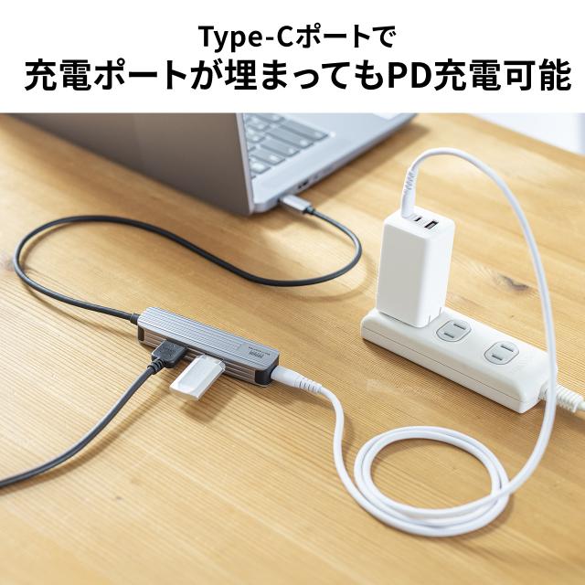 ●Type-CポートはPD対応のACアダプタを接続すれば周辺機器を使用しながらUSB PD(USB Power Delivery)対応のパソコンの充電ができます。最大100Wまでの充電に対応しています。