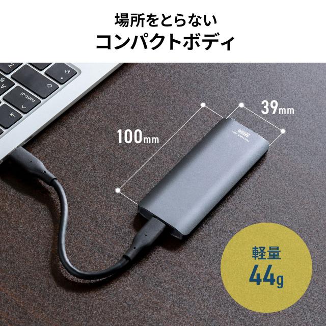 ●USB3.2 Gen2(USB3.1/3.0)で超高速データ転送に対応したポータブルSSDです。●最大書込速度約1000MB/s、最大読込速度約600MB/sです。