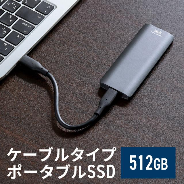 ⇒ご購入の前にご確認下さい取り回しが良いケーブルタイプのポータブルSSD。書き込み1000MB/S、読み込み600MB/Sと読み書き速度が早く、超高速データ転送に対応したSSD。Type-AケーブルとType-Cケーブルを付属し、コンパクトボディで耐衝撃構造のコンパクトサイズ。512GB。【WEB限定商品】