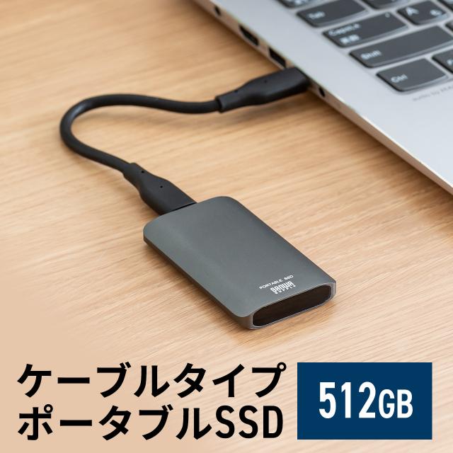 ⇒ご購入の前にご確認下さい取り回しが良いケーブルタイプのポータブルSSD。書き込み540MB/S、読み込み400MB/Sと読み書き速度。Type-AケーブルとType-Cケーブルを付属し、コンパクトボディで耐衝撃構造のコンパクトサイズ。512GB。【WEB限定商品】