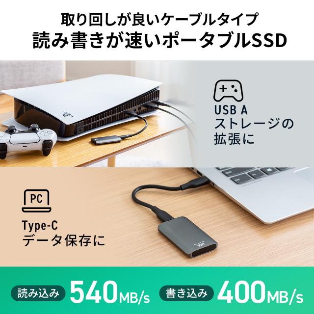 ポータブルSSD 外付け USB3.2 Gen2 512GB 最大書込速度約540MB/s 小型 テレビ録画 PS5/PS4/Xbox Series X Type-A/Type-C[600-USSDS512GB]