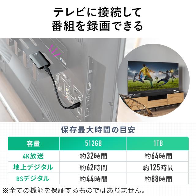 ※テレビで使用する場合は録画用のUSBポートに接続してください。デジタルカメラ接続用や保守用のUSBポートでは使用できません。