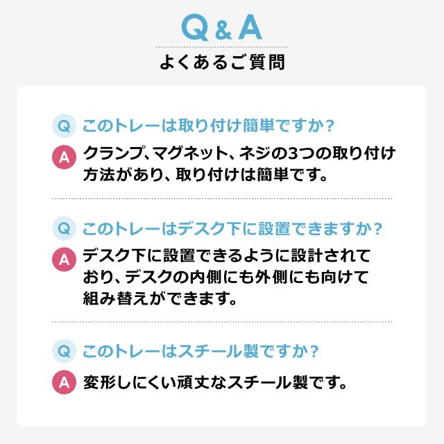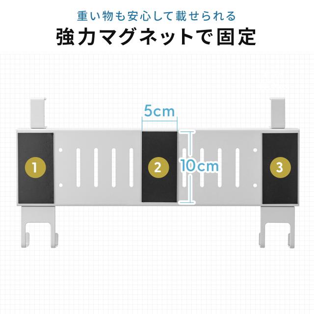 ●電源タップとケーブルを収納し、デスクに後付けできるデスク下収納ラックです。●3つの取り付け方法(クランプ、マグネット、ネジ)に対応しているので、様々な場所に設置できます。