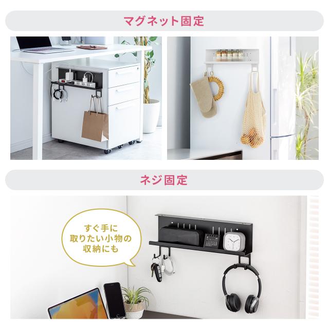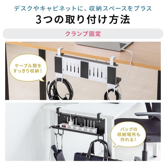 デスク下収納ラック 幅40cm Sサイズ クランプ マグネット 木ネジ 電源タップ ドッキングステーション ルーター ケーブルトレー 調味料ラック 配線整理 壁面収納 スチール ブラック ホワイト[200-CB050]